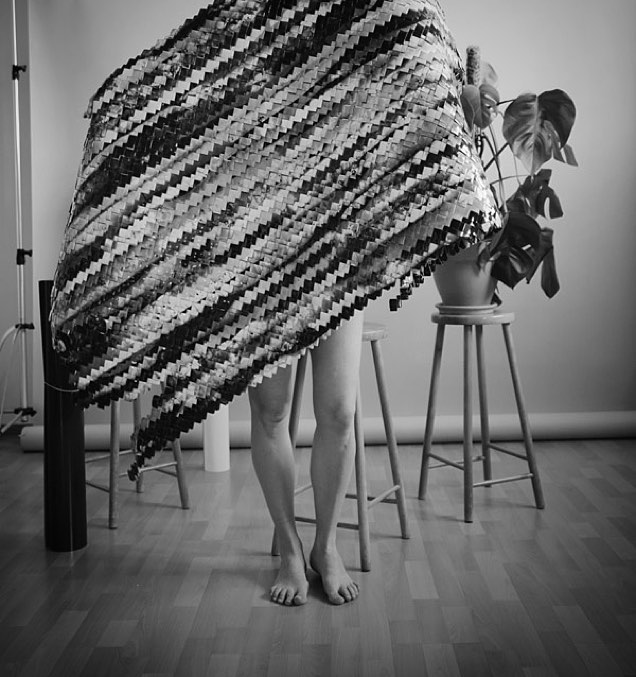 Continua Valentina De'Mathà : “Le sculture che realizzo intrecciando carta, sono corpi umani: involucri di riflessioni e rielaborazioni e somma delle proprie scelte azioni e stati emotivi; che si costruiscono seguendo l'ordine della propria trama esistenziale.